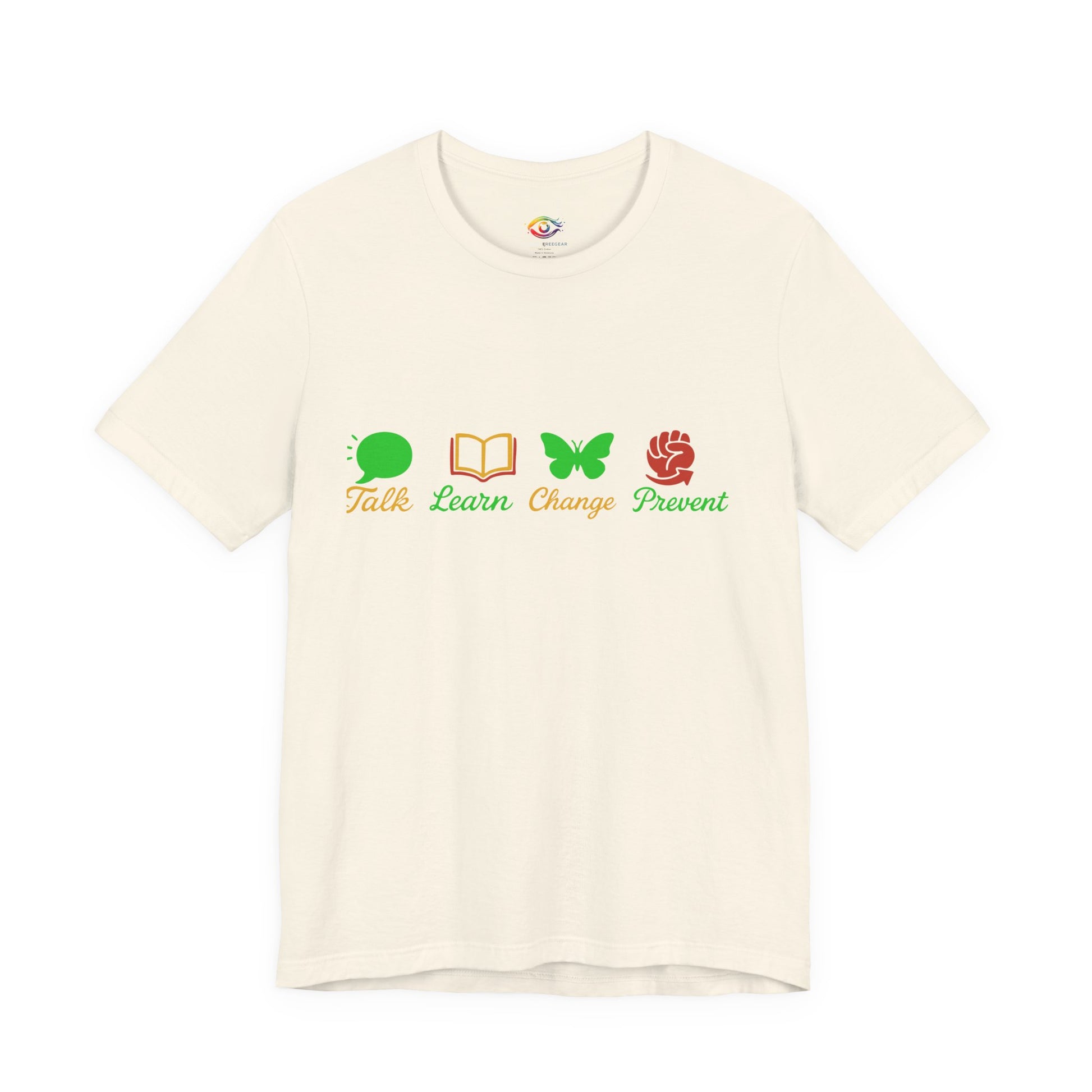 Talk Learn Change Prevent Gambling Addiction Recovery T-Shirt – red–black–green tricoloDesign by GambleFreeGear”