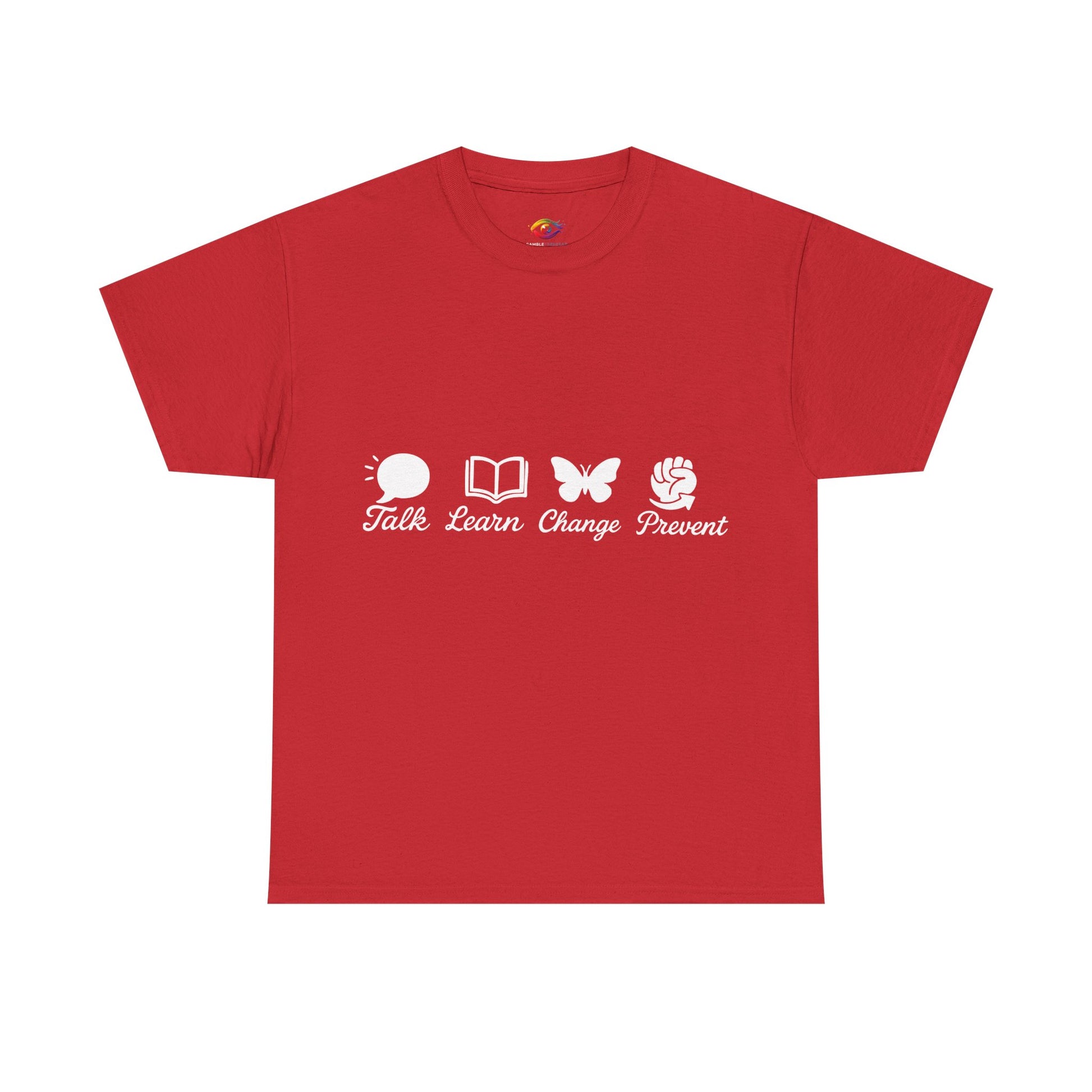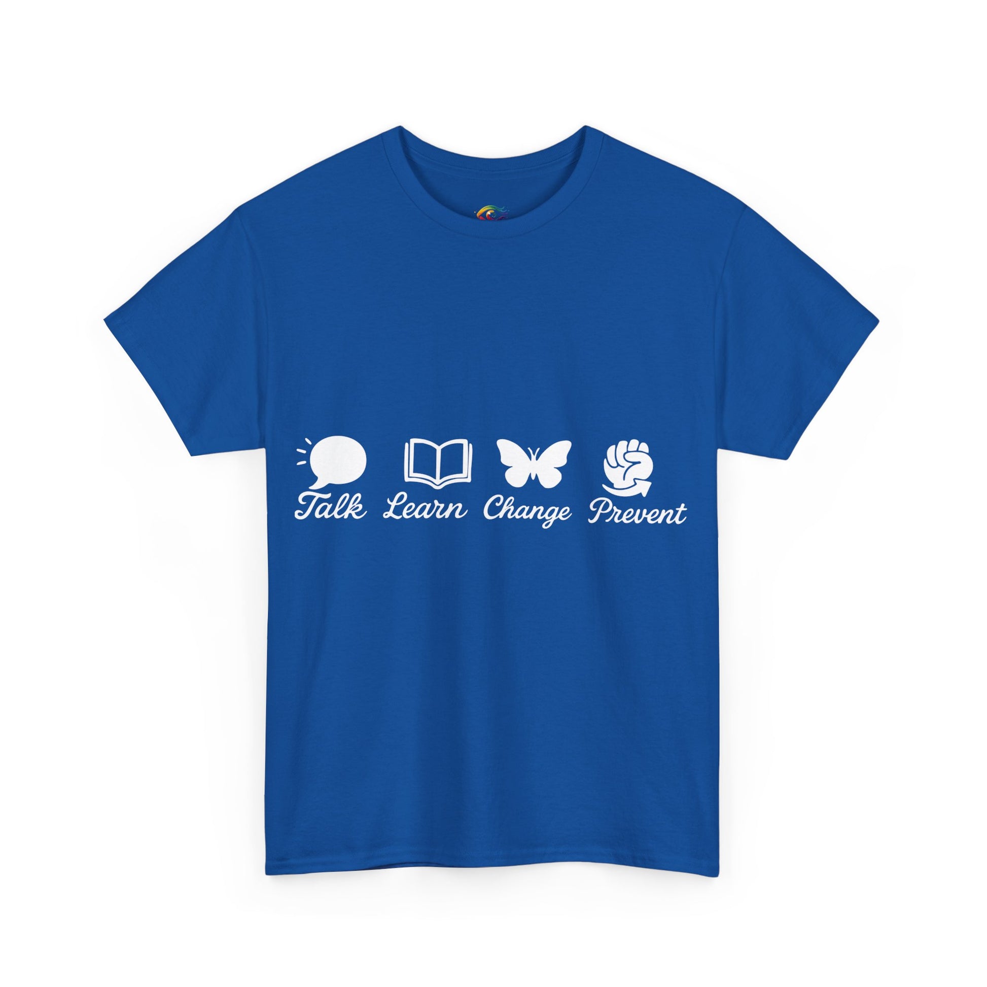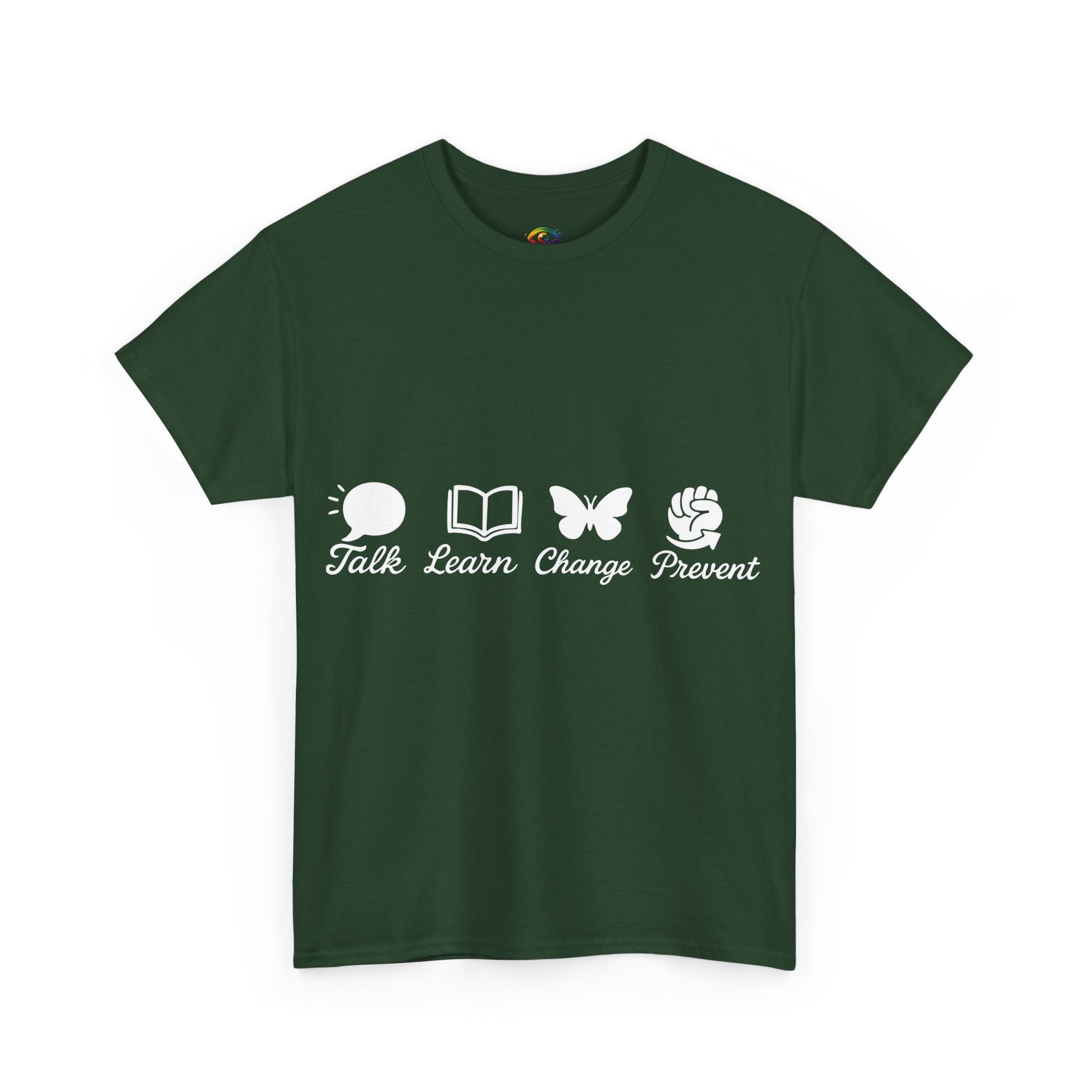 Product Title:Inspirational Unisex Jersey Tee – Talk. Learn. Change. Prevent.